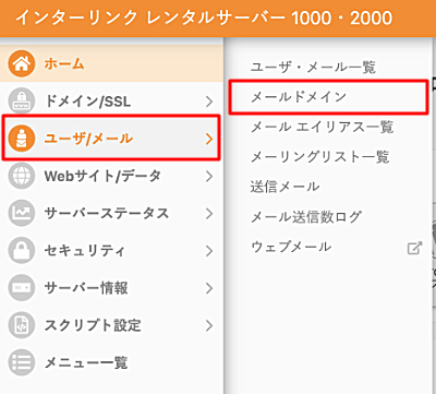 2.ユーザ/メールから『メールドメイン』をクリックします。