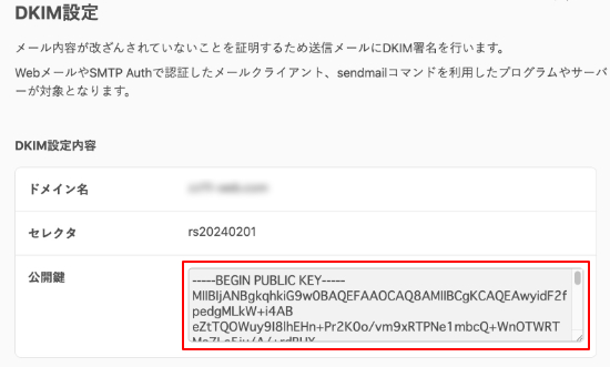 DKIMレコードは登録されません。DKIMレコード登録前に公開鍵の確認をされたい時にご利用ください。