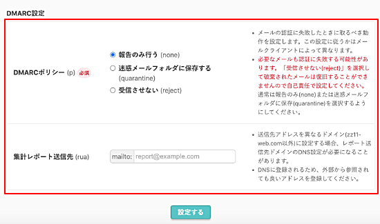 | DMARCのポリシーの変更、集計レポートの送信先を変更する |