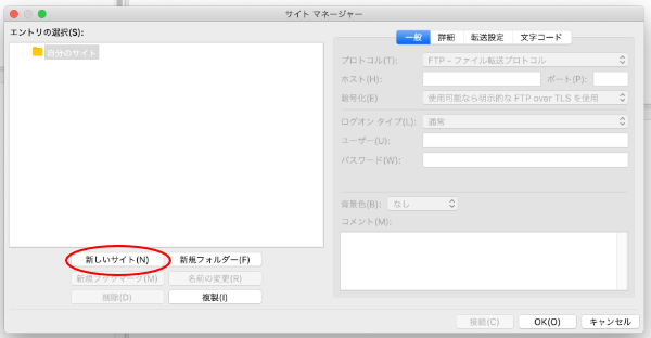 6.画面左上に[新規サイト]が表示されますので、任意の名称へ変更します。
