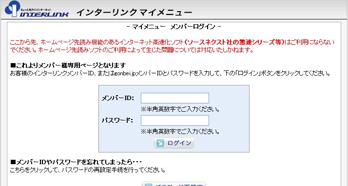 マイメニュー の画面よりメンバーID・パスワードを入力しログインします |