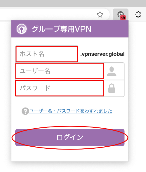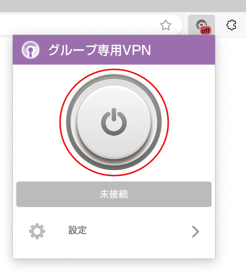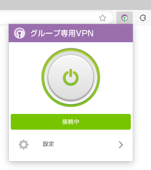 2.拡張機能のアイコンをクリックして、グループ専用VPNの横にある表示ボタンを有効にします。