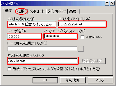 FFFTP の設定につきましては下記をご参照ください。