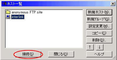 .以上で設定は完了です、ホスト一覧に「interlink」が追加されていますので、接続ボタンを押し接続を開始してください