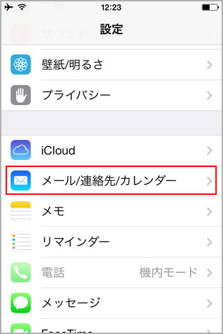 2.メニューから「メール/連絡先/カレンダー」をタップします。