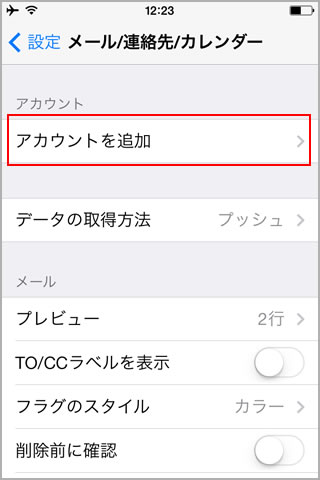3.「アカウントを追加」をタップします。