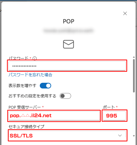 | POP受信サーバー |