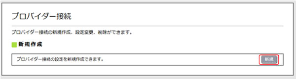 http://192.168.100.1)にアクセスして「かんたん設定」のプロバイダー接続から、「新規」をクリックします。