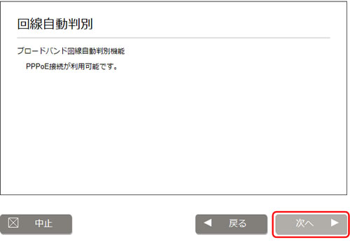 3.PPPoE接続が利用可能ですと表示されたら「次へ」をクリックします。