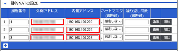 ※なお、静的IPマスカレードは、A.B.C.1のサーバーで公開するサービスによって適宜変更し、確認をクリックしてください。