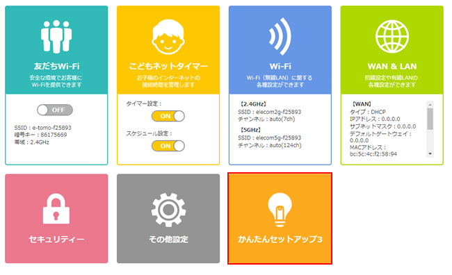 3.かんたんセットアップをクリックします