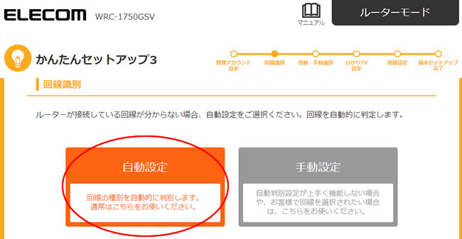 WRC-1167GST2/WRC-2533GST2は、手順「1」の段階で、自動的に回線識別を開始して一定時間経過後(約1~2分程度)設定が完了となります。IPv4およびIPv6で接続できているかを確認するにはより、正常に接続できているかご確認ください。