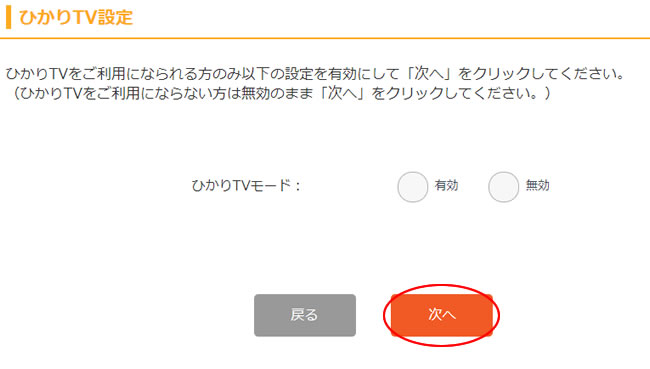 5.回線識別が完了後、ひかりTVの設定を選択し、次へをクリックしてルーターの設定は完了となります。