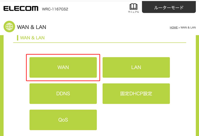 4.「WAN」をクリックします。