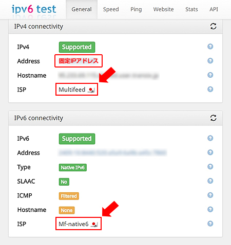 IPv4およびIPv6で接続できているかを確認するには |