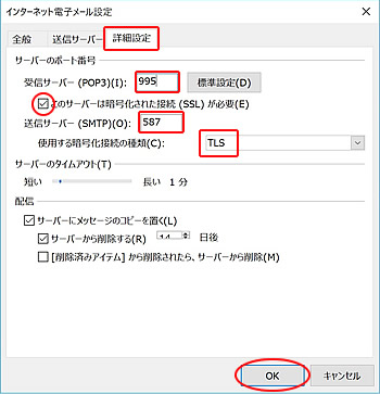 暗号化通信を利用する場合のメールソフト基本設定