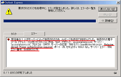 | 「Relaying denied Proper authentication required ..... エラー番号0x800CCC79」 |
