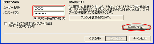 7.「詳細設定」のボタンをクリックし、ポート番号を25→587番に変更します。