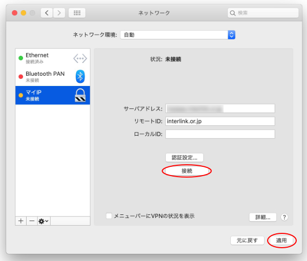 7.右下の適用ボタンをクリックして、接続を開始してください。