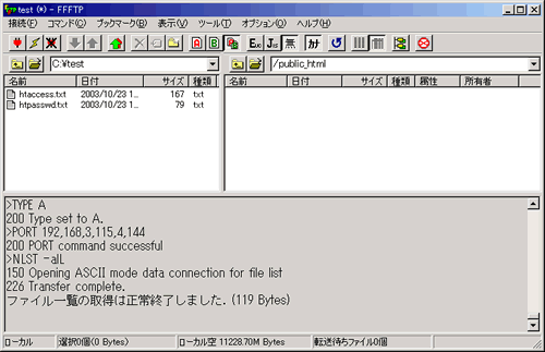 1と2で作成したファイルをFTPで転送いたします。お使いのFTPソフトでサーバーに接続を行なってください。