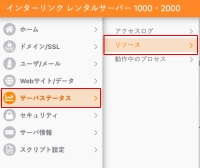 「リソース情報」機能では、サーバの稼働状況を確認することが可能です。