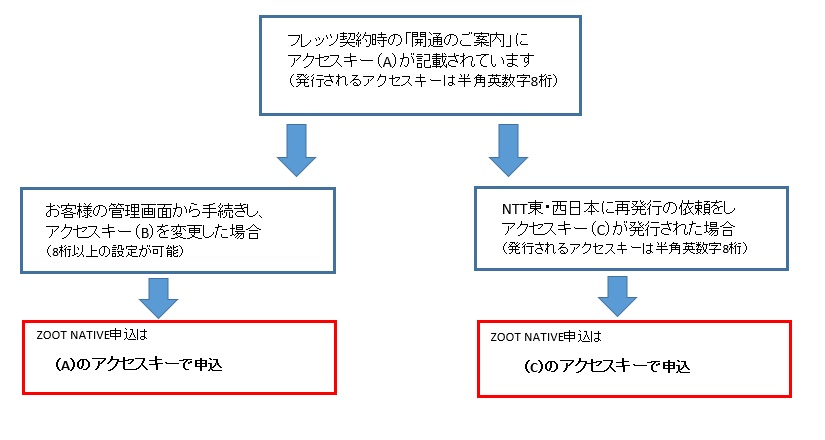※お客様の管理画面から変更したアクセスキー(B)での申込はできません。NTT東西から発行された当初のアクセスキー(A)でお申し込みください。