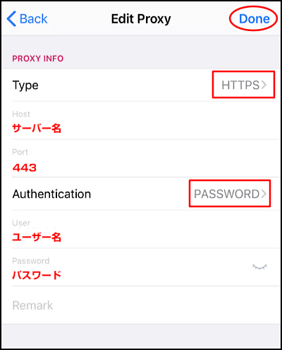 5.下記のように入力し、画面右上の「Done」をタップします。