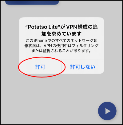 ※初回のみVPN構成追加の画面が表示されますので、「許可」をタップします。