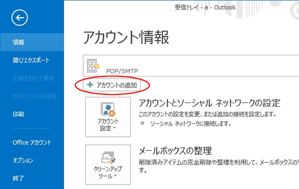 3.アカウント情報から「アカウントの追加」をクリックします。