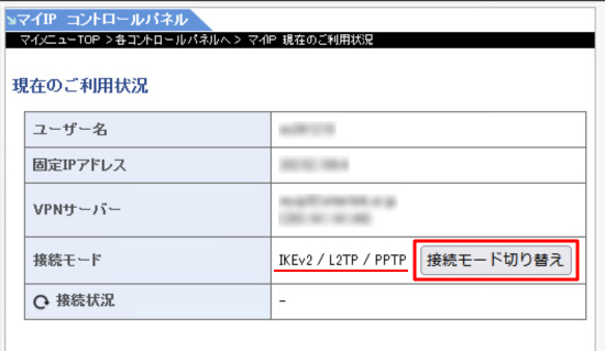 マイIPの接続モードを切り替える方法は下記をご参照ください。