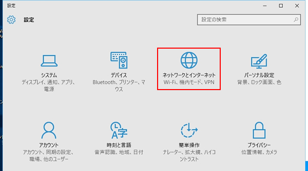 2.「ネットワークとインターネット」をクリックします。