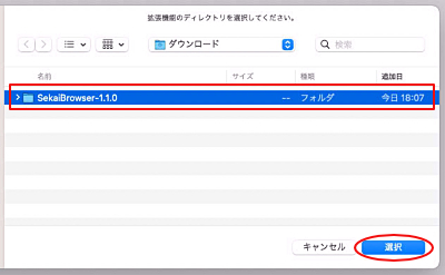 6.「パッケージ化されていない拡張機能を読み込む」をクリックして、先程解凍したディレクトリ(フォルダ)を選択します。