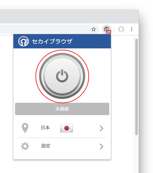 8.拡張機能のアイコンをクリックして、セカイブラウザの横にあるピンマークをONにします。